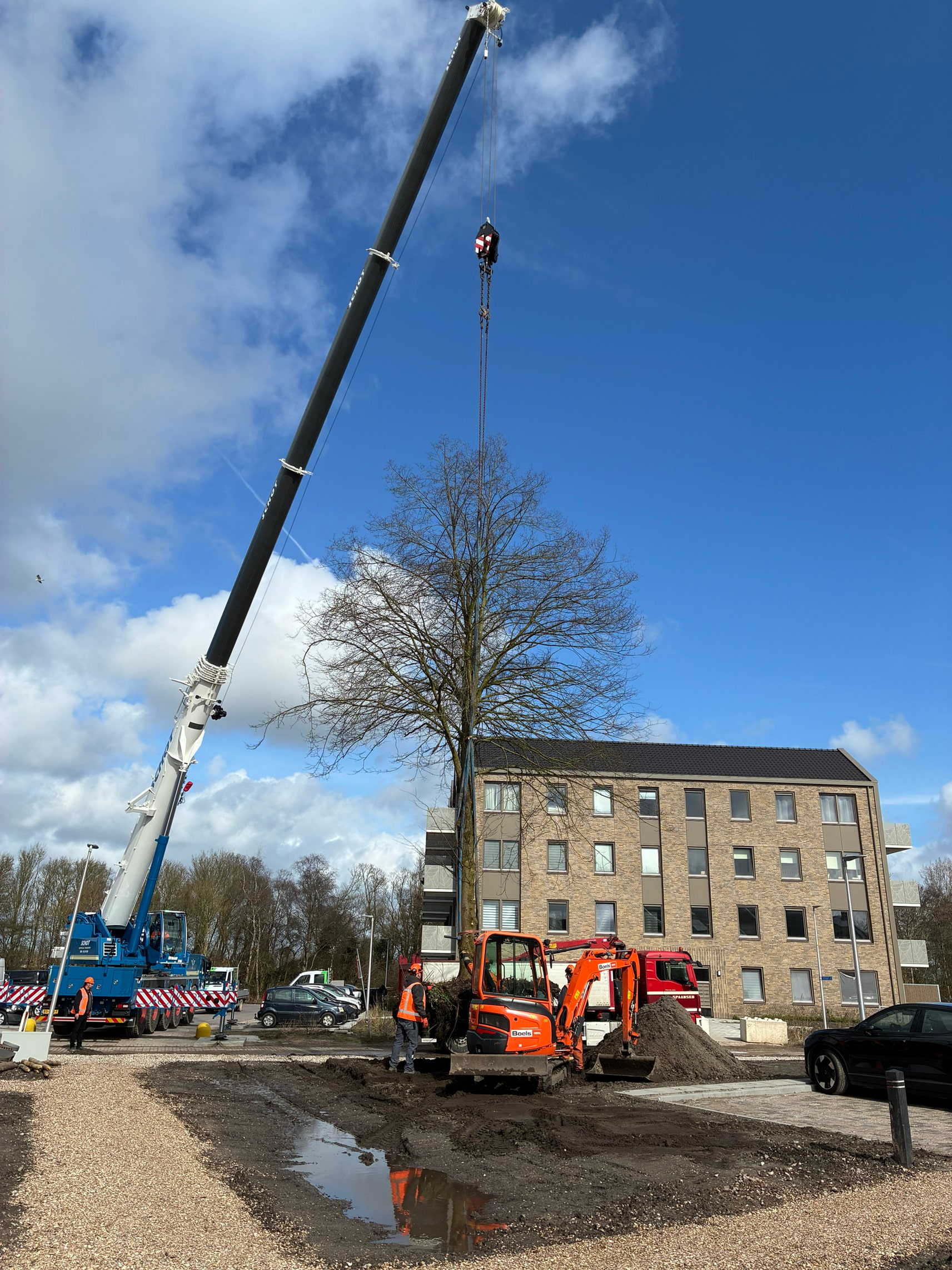 Op woensdag 18 maart, tijdens de Nationale Bomenplantdag, hebben we een mooie stap gezet richting een nóg groener en levendiger Kwadijkerpark. Met veel zorg en teamwork zijn de eerste drie lindebomen succesvol verplaatst. Ze hebben inmiddels een mooie, nieuwe plek gekregen waar ze volop de ruimte hebben om verder te groeien.